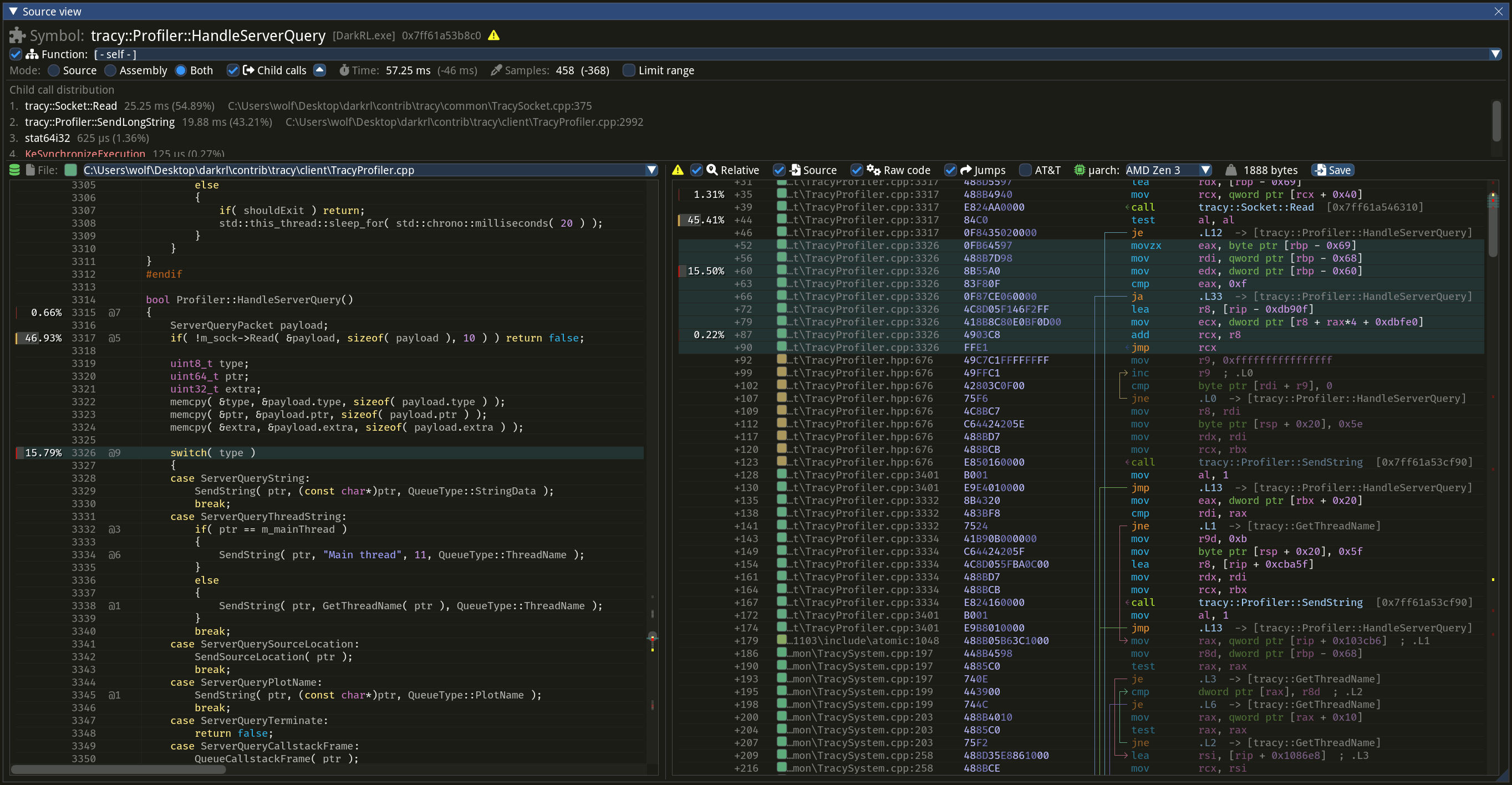 A real time, nanosecond resolution, remote telemetry, hybrid frame and sampling profiler for games and other applications.